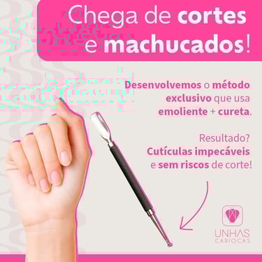 Remoção de cutículas com método exclusive que usa emoliente + cureta.